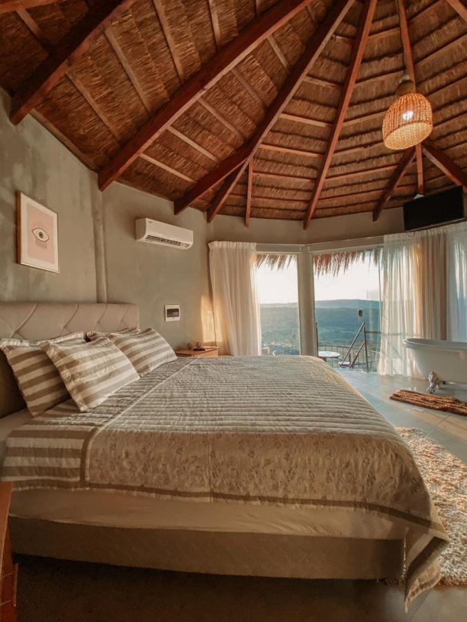 Las cabañas están diseñadas con una combinación de madera, piedra y paja, creando un ambiente rústico y sofisticado con terminaciones de alta calidad.